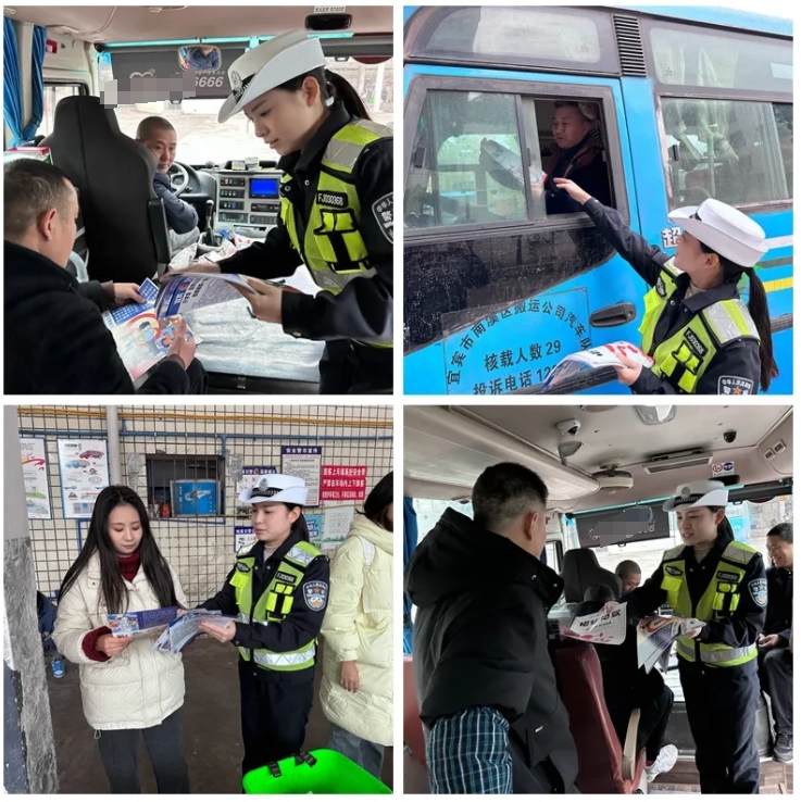 南溪区交管大队到辖区客运站开展交通安全宣传,宣传员通过发放宣传资料、面对面宣讲等方式,向客运车辆驾驶员、乘客普及道路交通安全法律法规。同时,结合辖区道路交通事故案例,以案说法,讲解各类交通违法行为对自己和他人造成的危害,倡导大家遵守交通法规,安全文明出行。