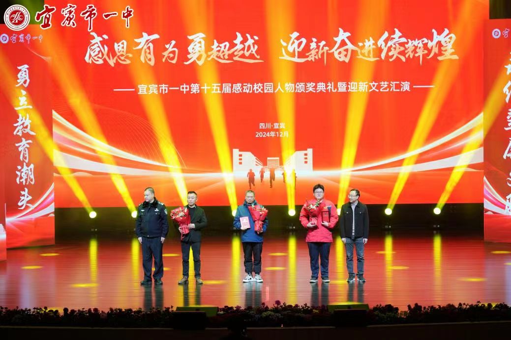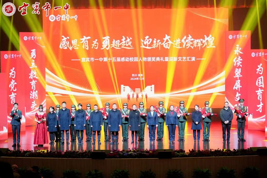 璀璨星光耀,扬帆新岁来。2024年12月31日,宜宾市一中举行“感恩有为勇超越 迎新奋进续辉煌”第十五届感动校园人物颁奖典礼暨迎新文艺汇演。此次活动旨在强化青年学生的思想道德修养,培育感恩意识,激发爱国情感,树立青春典范,以此激励全校师生以更加昂扬的斗志迎接新年的到来。