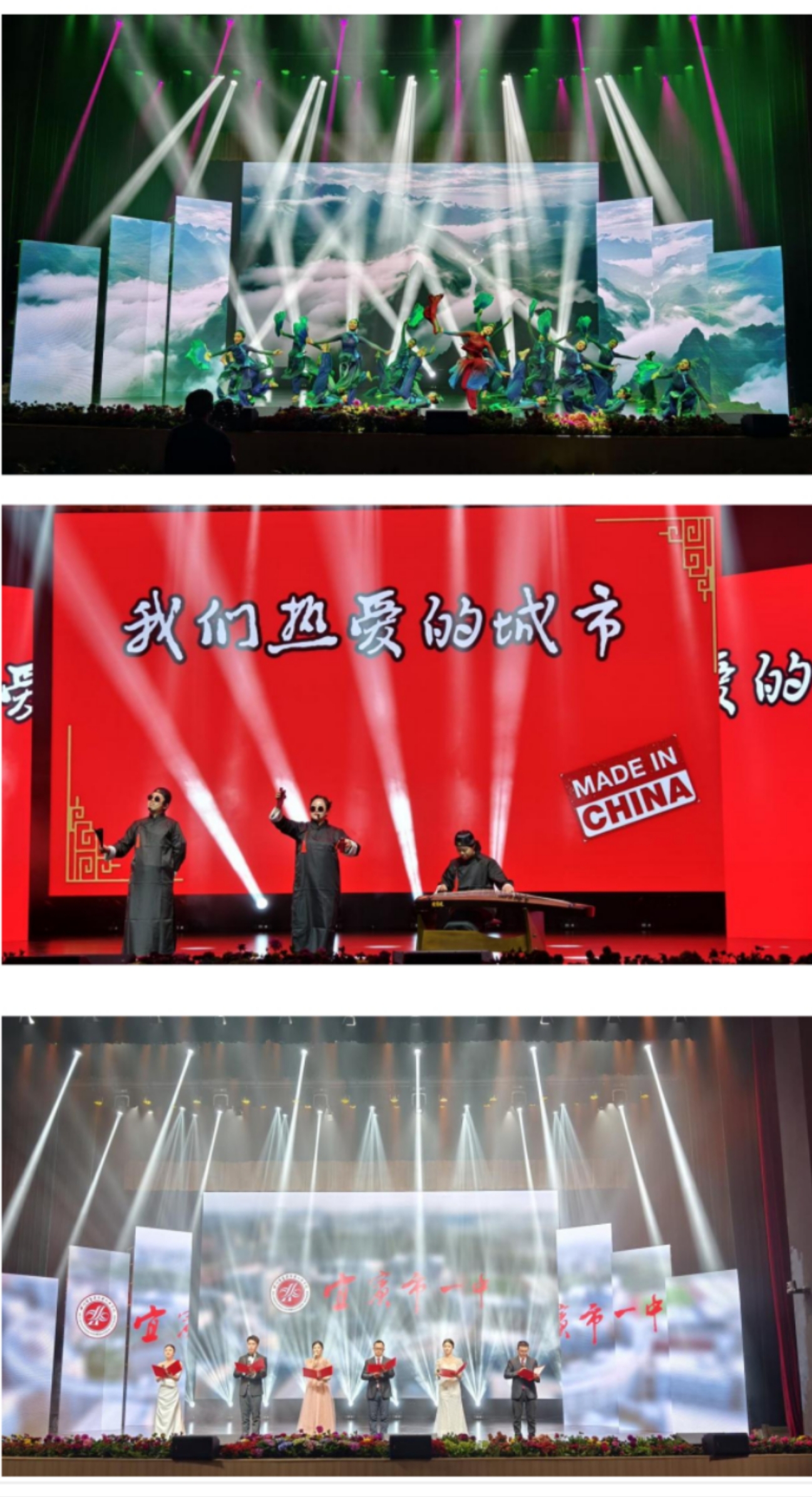 文艺汇演高潮迭起,尽显一中师生精神风貌。教师团队舞蹈《灯火里的中国》惊艳全场,轻盈舞步与深情演绎,舞出对祖国的挚爱;原创说唱《红》融合传统古筝,强劲节奏与悠扬旋律交织,奏响宜宾精神文明新乐章。青蓝舞蹈团带来的《一条大河》更是演绎了中华儿女亘古不变的家国情怀!台下掌声雷动,欢呼不断。