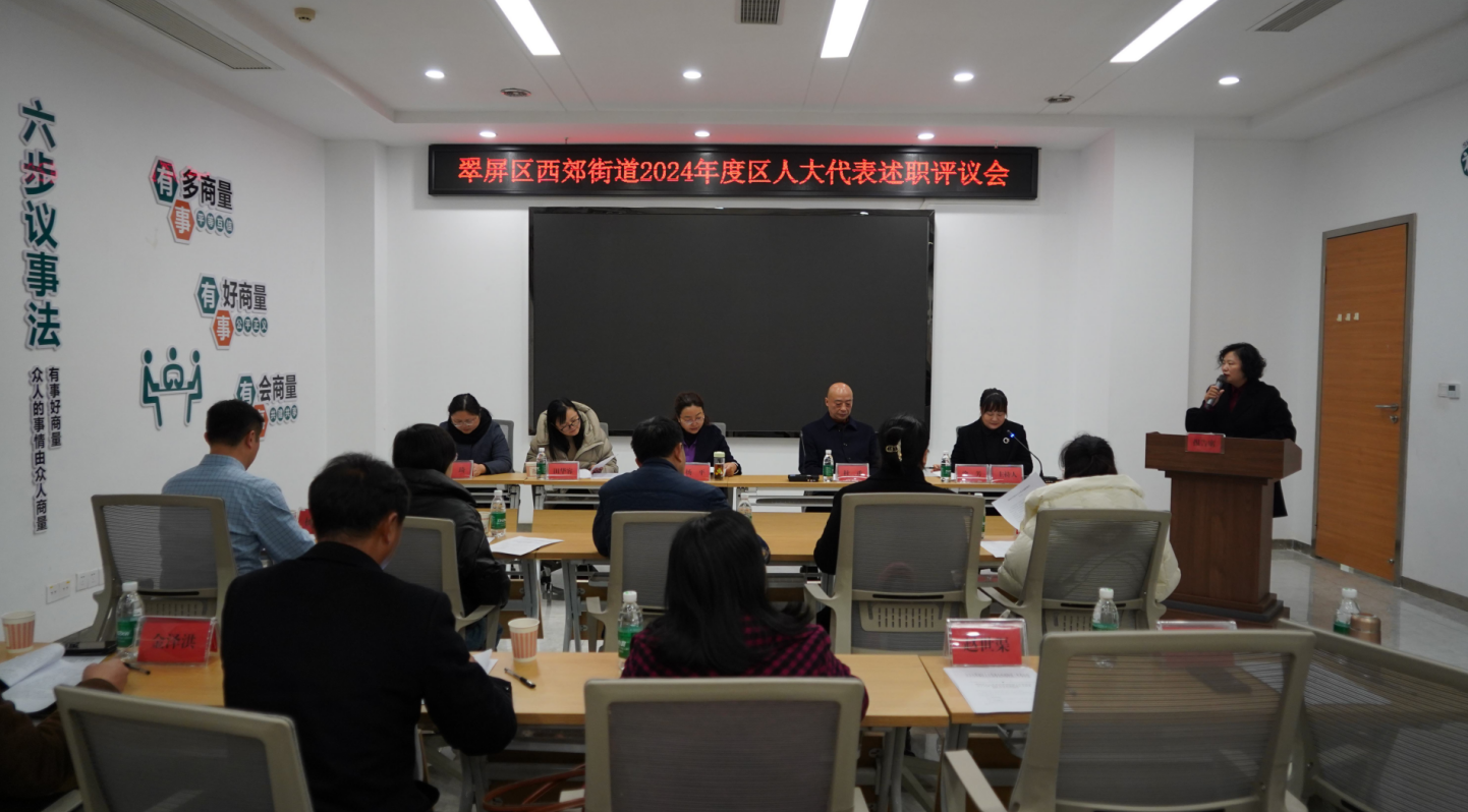 为进一步促进人大代表依法履行职责,更好地发挥人大代表与人民群众之间的桥梁纽带作用,增强人大代表履行代表职务的使命感和责任感,按照翠屏区人大常委会办公室《关于组织开展2024年度翠屏区直接选举人大代表述职月活动的通知》要求,1月3日,人大西郊街道工委召开2024年度区人大代表述职评议会。按照“三联三定”文件要求,联系西郊街道的区人大常委会领导、联系委室负责人、联系委员全程观摩指导。