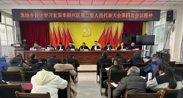 近日,龙池乡组织专题学习叙州区两会精神。会议由乡党委书记主持,党政班子成员、全体机关干部、村(社区)党支部书记参加会议。