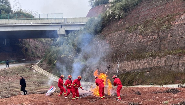 为切实做好岁末年初森林火灾防控,提升镇森林防灭火队伍的协同作战能力和实战水平。1月8日下午,宜宾市叙州区泥溪镇在泥溪村310省道交界处开展森林防灭火应急演练。该镇党委、政府相关负责人,全体专业、半专业扑火队员、医院、派出所40余人参加演练。