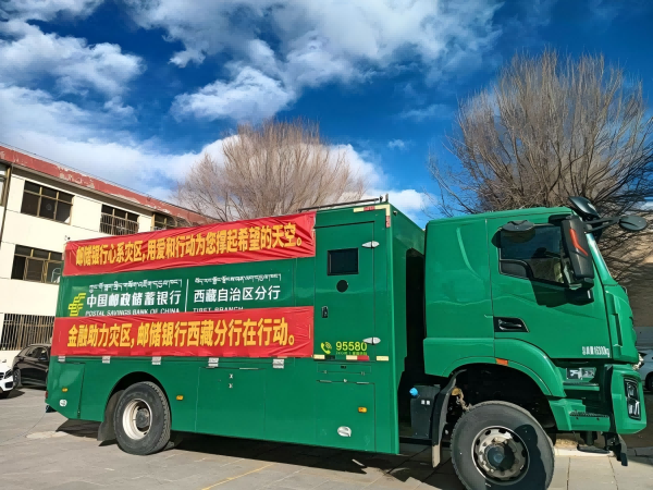邮储银行西藏自治区分行金融流动服务车前往日喀则市定日县,为震区百姓提供金融服务
