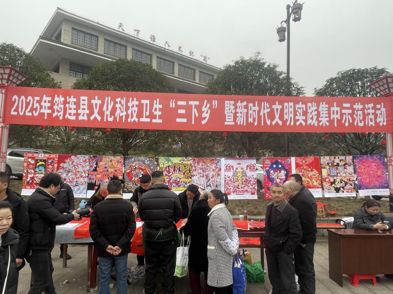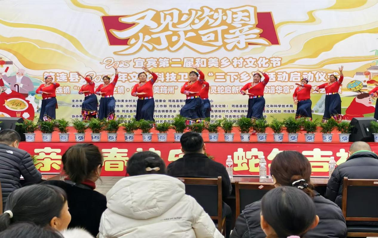 1月21日,宜宾市筠连县2025年文化科技卫生“三下乡”活动启动仪式在筠连镇丰收村文化广场举行,活动通过文艺汇演、文明实践活动的形式为群众送上了一场“惠民盛宴”。