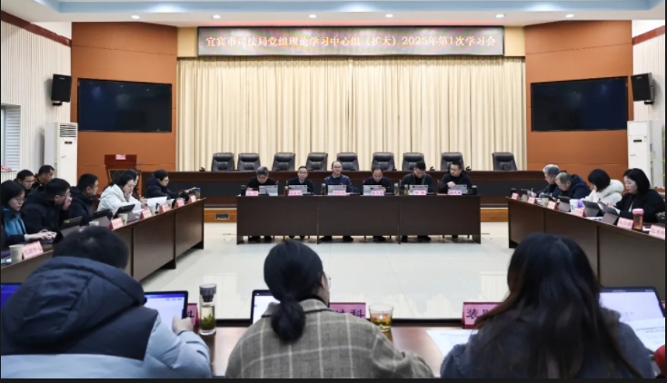 2月5日,宜宾市司法局党组召开理论学习中心组(扩大)2025年第1次学习会,市司法局党组书记、局长杨国庆主持会议并讲话。