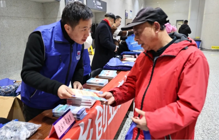2月7日下午,宜宾西站,迎来返工潮高峰。宜宾市司法局、叙州区司法局普法工作者们抓住这一有利时机,走进宜宾西站开展了一场以“外出务工开眼界 返乡创业惠乡邻”为主题的普法宣传活动,将法律知识送到群众身边。