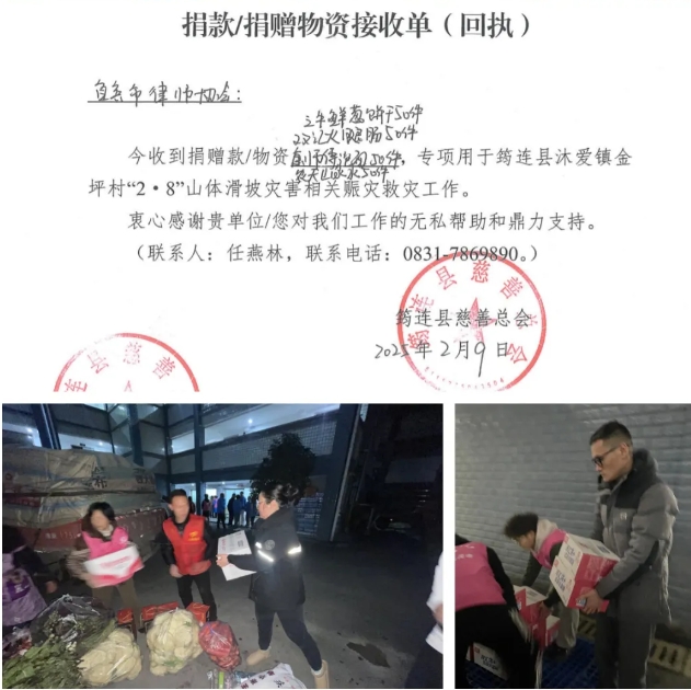 宜宾市律师协会相关负责人说:“目前,募捐还在进行中,每一份爱心都会专项用于沐爱镇金坪村受灾群众的物资保障。让我们继续发扬守望相助的精神,共同点燃希望的灯火!”(供图:宜宾市司法局)