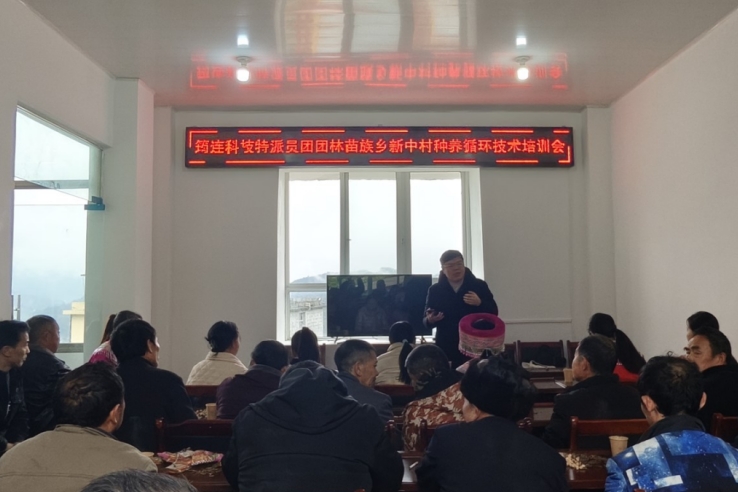近日,筠连县科技特派员服务团在筠连县团林苗族乡新中村1组党群服务中心二楼会议室举办了包括中药材、肉牛、乌骨鸡、茶叶、林竹的特色产业种养循环技术培训,宜宾市农业科学院畜牧水产研究所所长周力高级畜牧师、团林苗族乡农业农村发展服务中心主任潘伟莅临指导,来自新中村各组种养大户65人参训。
