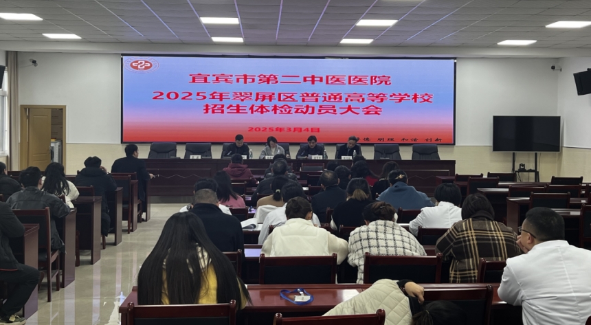 为贯彻落实省、市、区关于2025年普通高考体检工作有关文件重要指示精神,保质保量完成翠屏区普通高校招生体检工作,近日,宜宾市第二中医医院组织召开2025年高考体检动员暨培训大会。翠屏区教育考试中心副主任凌育章,区卫健局医政医管与中医股股长徐艳红,宜宾市二中医医院院长张主权等出席了此次会议。会议由宜宾市二中医医院副院长吴珂主持。