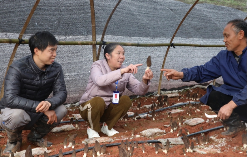 新产业新发展,也为村民生活带来了新面貌。双谊镇新政村党支部书记彭一表示,羊肚菌的丰收也带动了村内季节性务工的开展,比如近期就有二十余名村民在基地务工,参与土地养护、羊肚菌采收等工作。